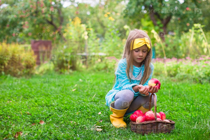Девочка с корзиной яблок