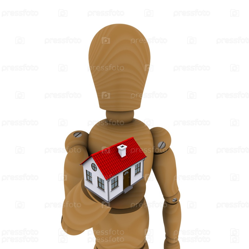 Деревянная кукла с домом на ладони