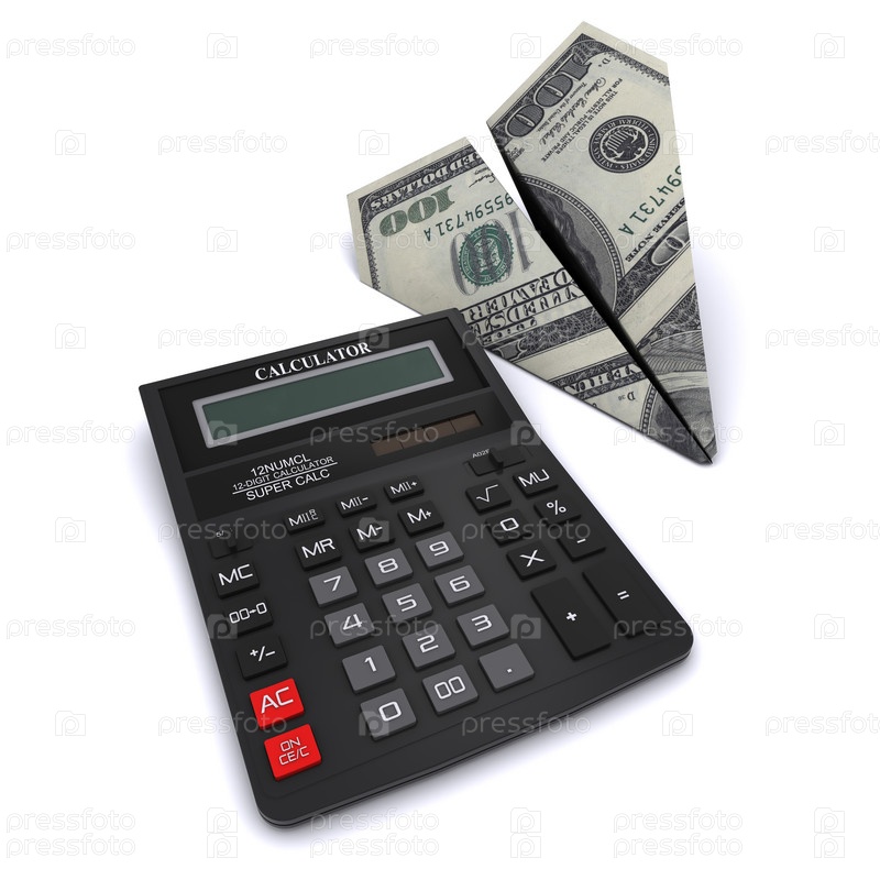 Калькулятор и самолет из долларов. 3D