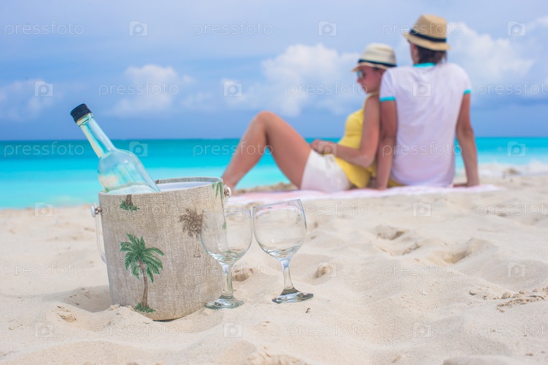 Счастливая пара на песчаном пляже