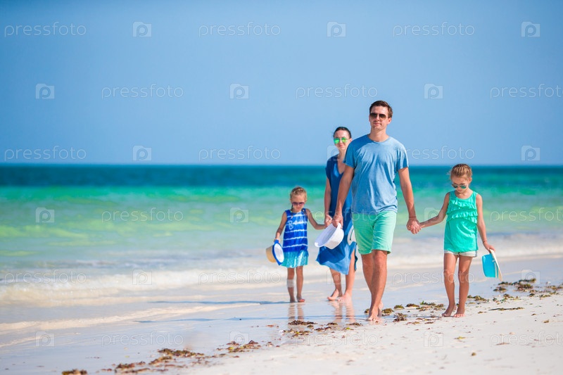 Счастливая молодая семья на пляжном отдыхе