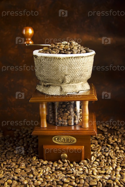 Механическая кофемолка и зерна кофе