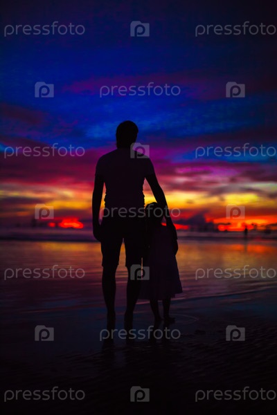 Отец и дочь на закате