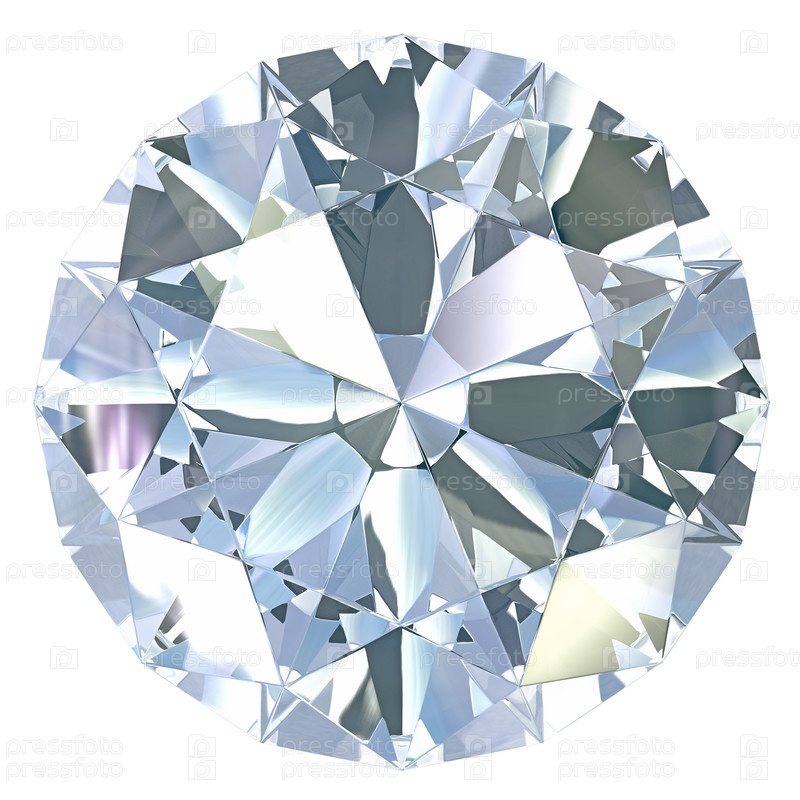 Круглый бриллиант с европейской огранкой, изолированный на белом фоне