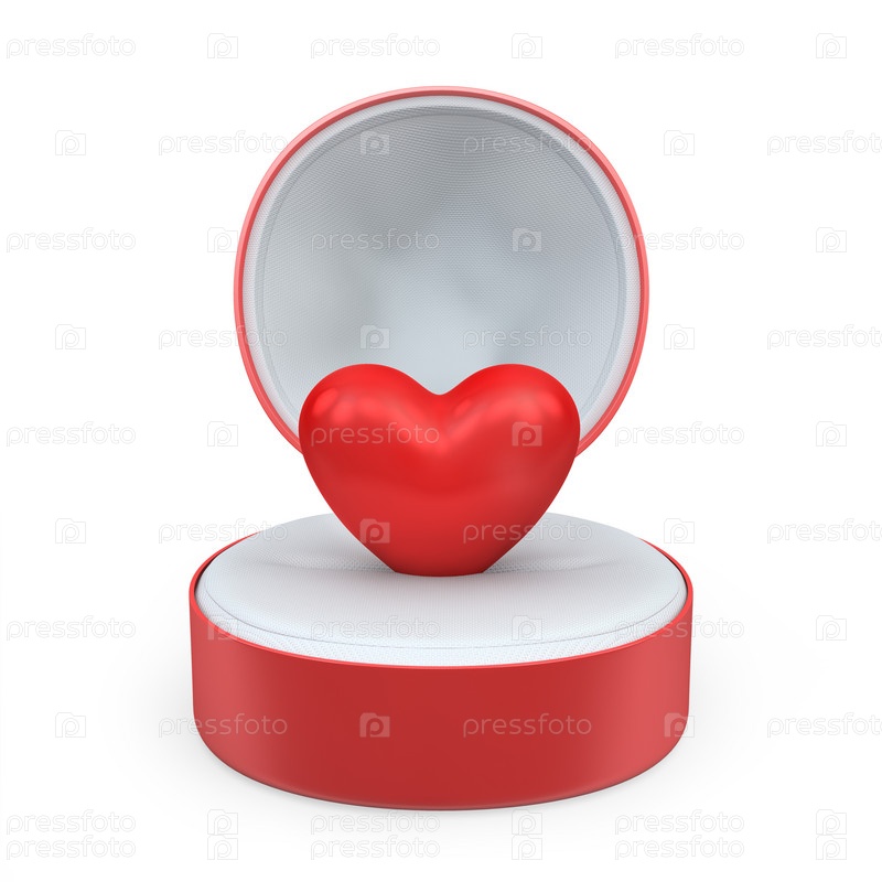 Сердце в круглой коробочке, изолированное на белом фоне