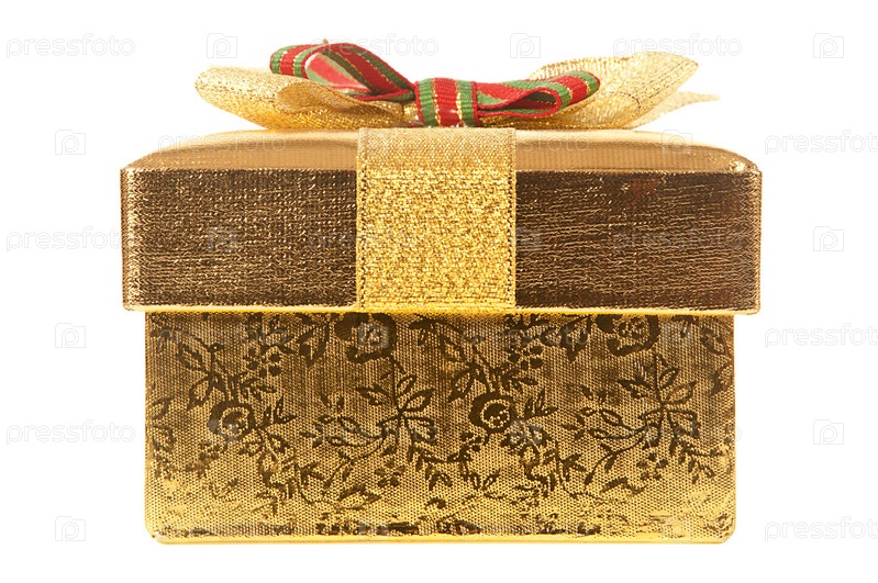 Подарочной коробка на белом фоне