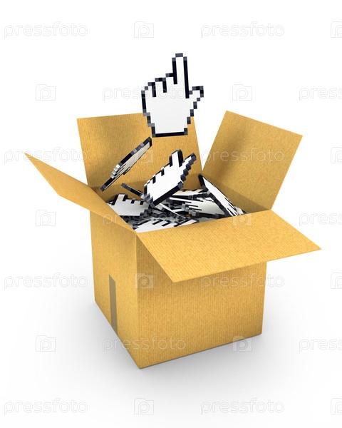 Куча стрелок в коробке на белом фоне