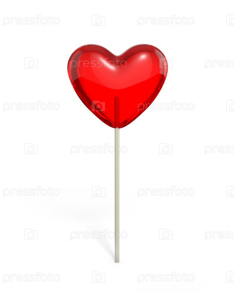 Леденец в форме сердца на белом фоне