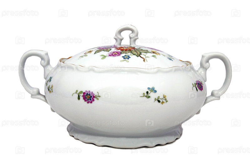 Фарфоровая супница на белом фоне