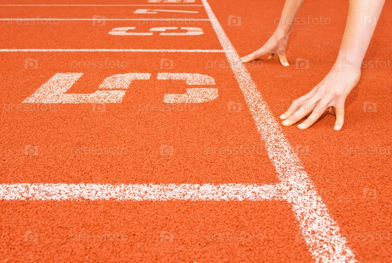 Спортсмен на старте на беговой дорожке