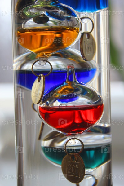 Плавающие колбочки внутри термометра со спиртом