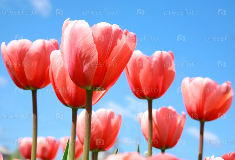 Розовые тюльпаны на фоне неба