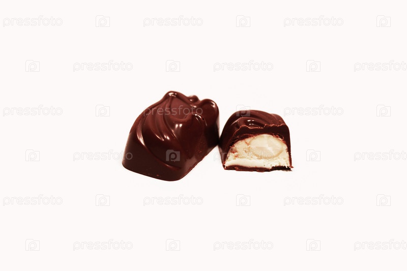 Шоколадные конфеты на белом фоне