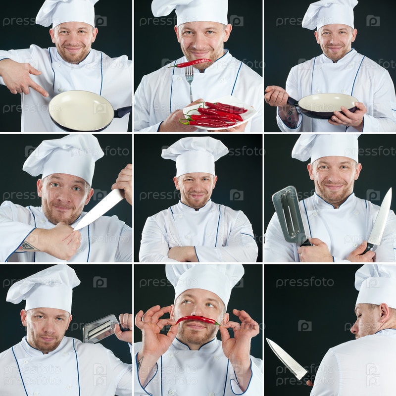 Шеф-повар на темном фоне, коллаж