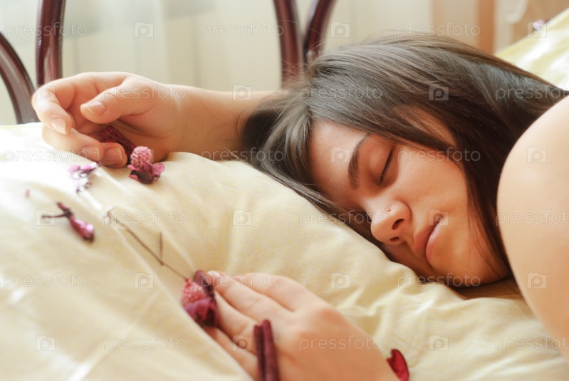 Девушка спит на кровати