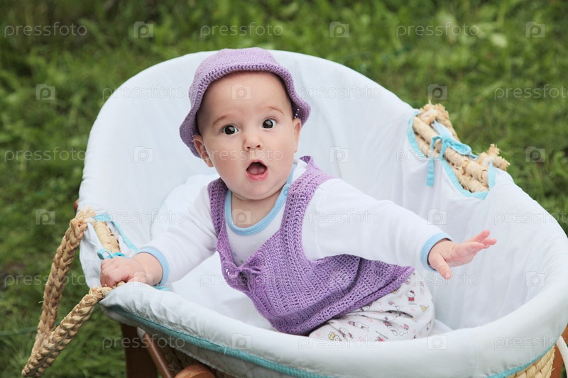Удивленный младенец в корзине