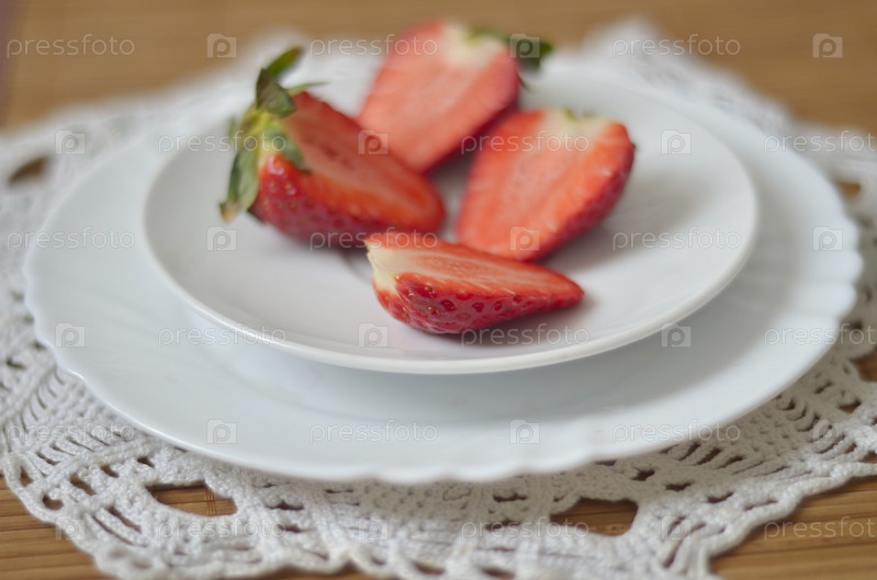 Спелая клубника на белой тарелке