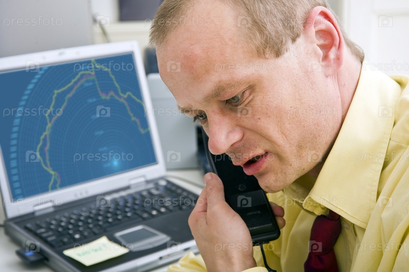 Уставший деловой мужчина разговаривает по телефону в офисе