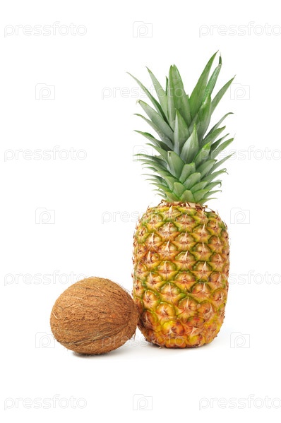 Кокос и ананас, изолировано на белом фоне