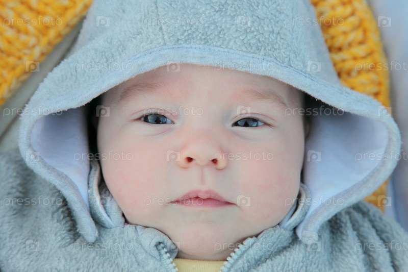 Маленький ребенок в сером капюшоне