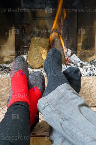 Люди греются у камина