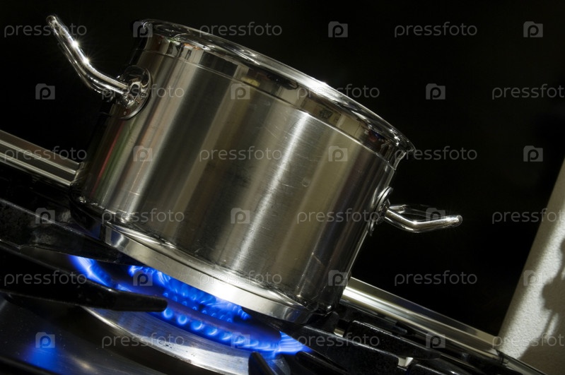 Нержавеющая кастрюля на плите