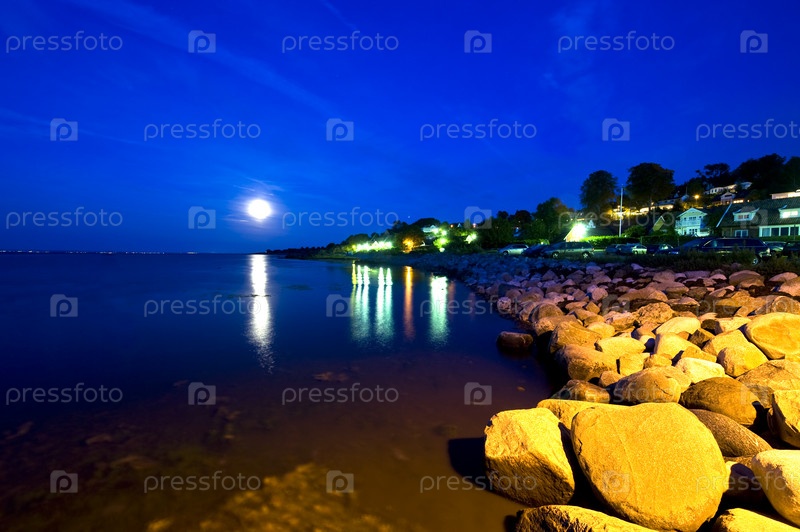 Восход Луны над побережьем Южной Швеции в Сконе