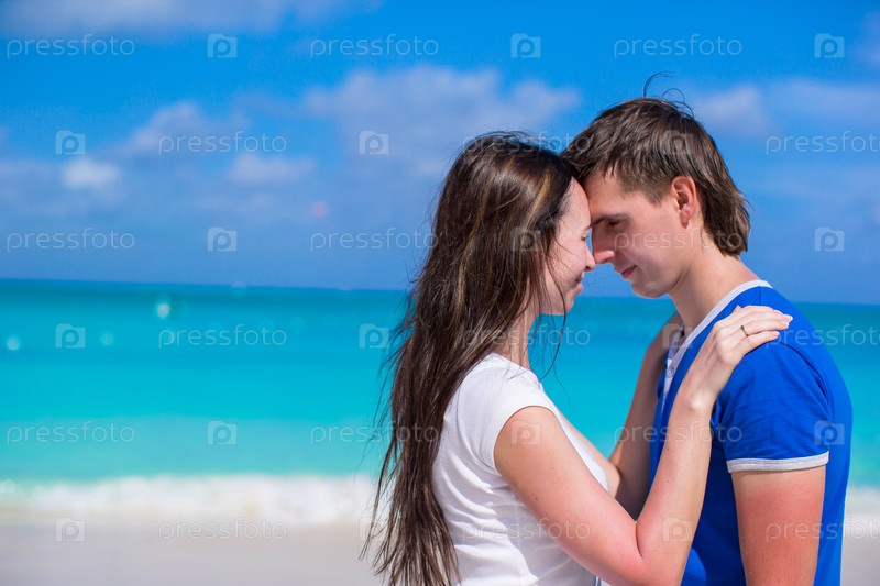 Счастливая молодая пара на пляже