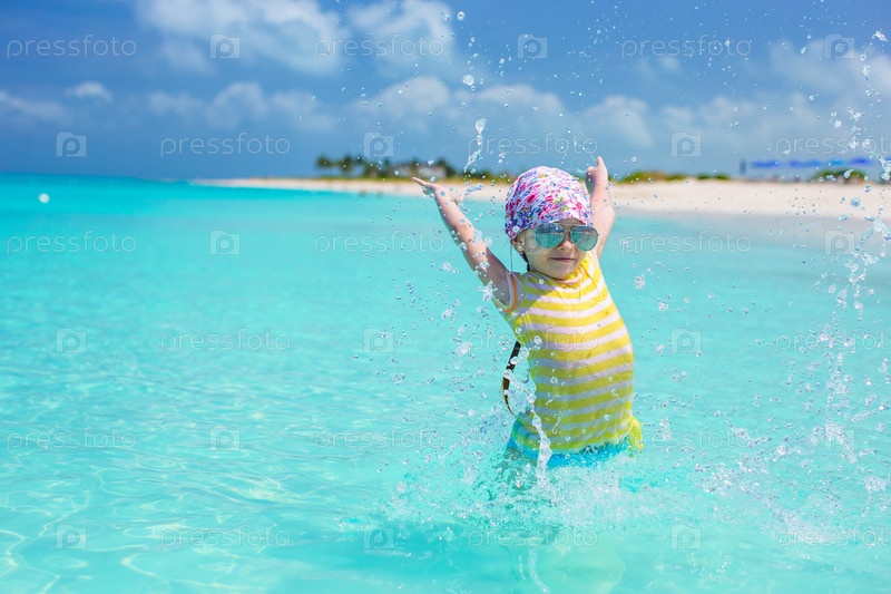 Счастливая девочка плескается в воде