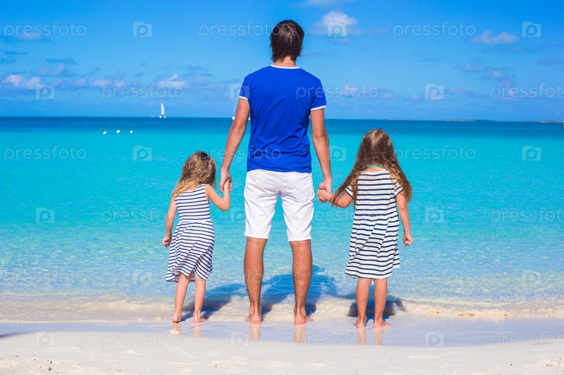 Отец с дочерьми на пляже