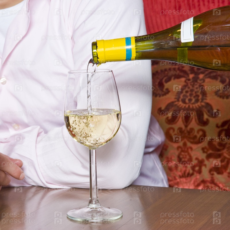 Белое вино наливают в бокал