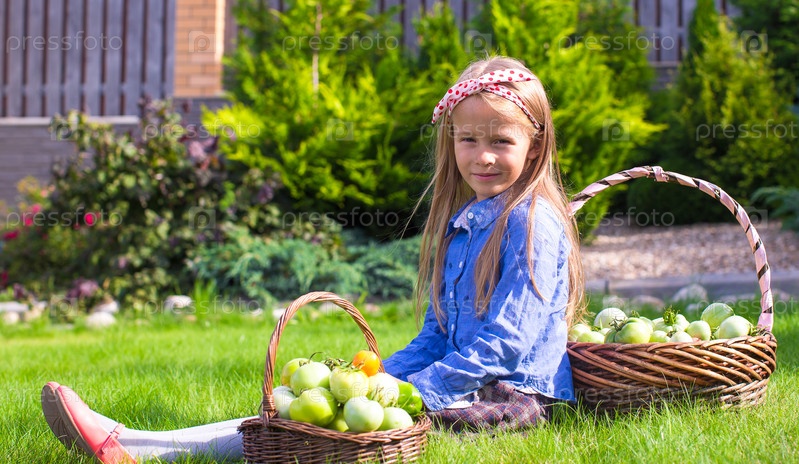 Девочка с корзинами помидор