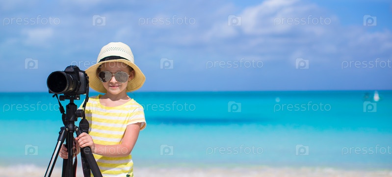 Маленькая девочка с камерой на пляже
