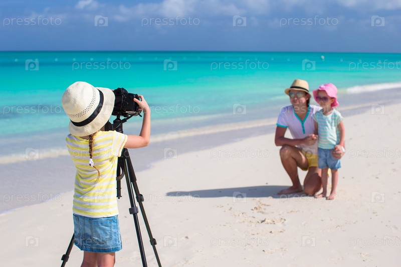Девочка снимает отца с сестрой