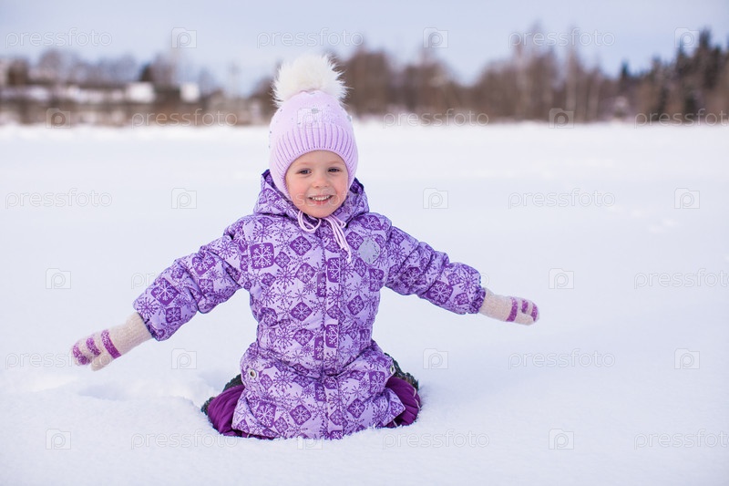 Маленькая счастливая девочка в зимней одежде