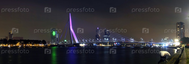 Мост Эразма и Роттердамский небоскреб в ночное время