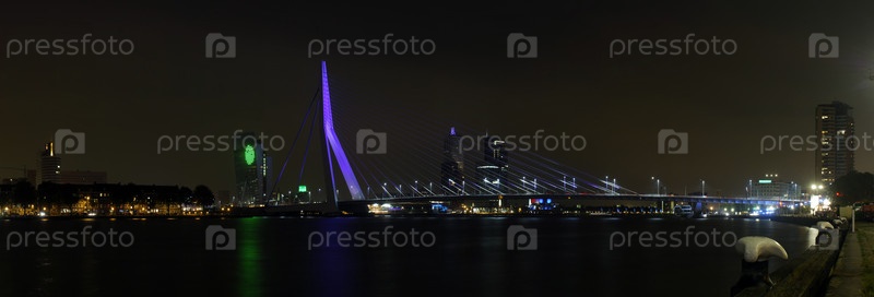 Мост Эразма и Роттердамский небоскреб в ночное время
