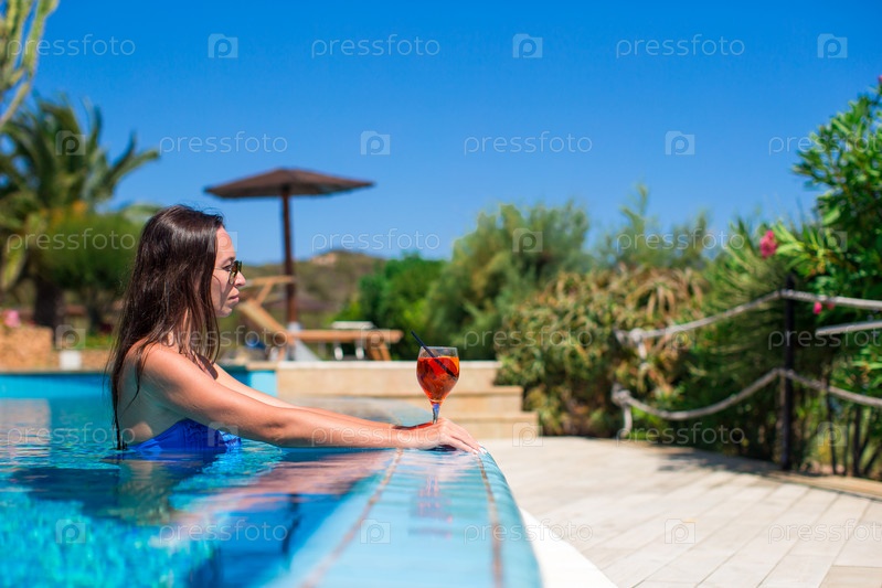 Красивая молодая женщина в бассейне