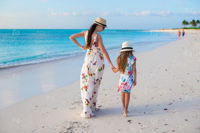 Красивая мать с дочкой на пляже