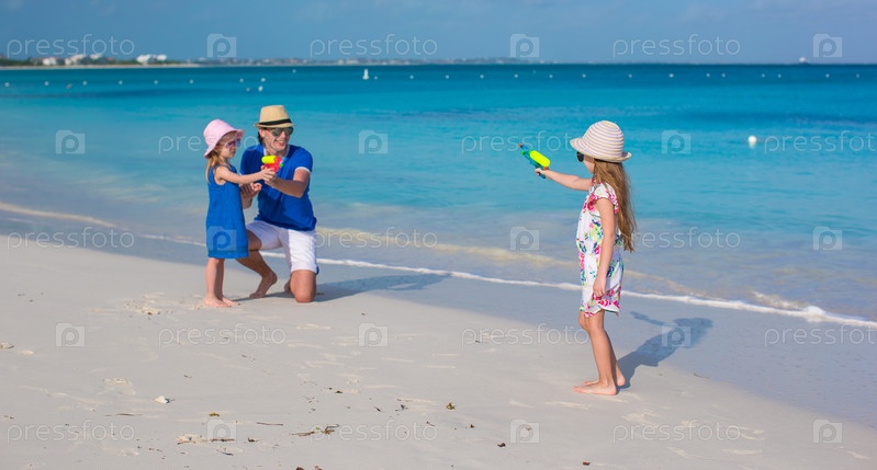 Отец с дочерьми на пляже