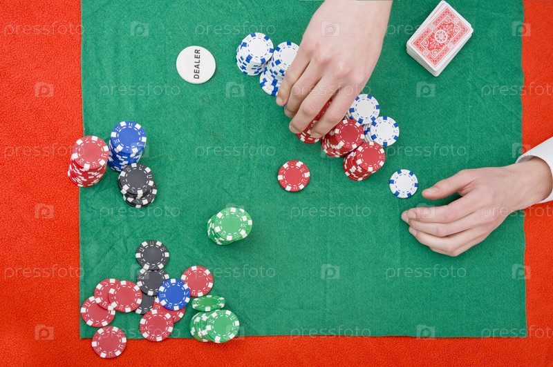 Игрок раскладывает фишки на покерном столе