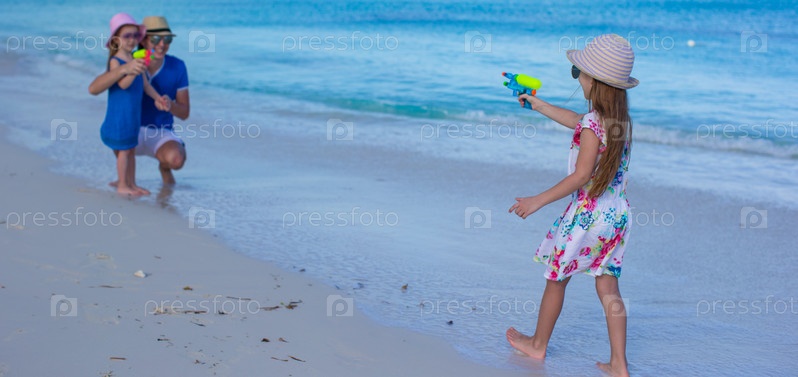 Отец с дочерьми на пляже