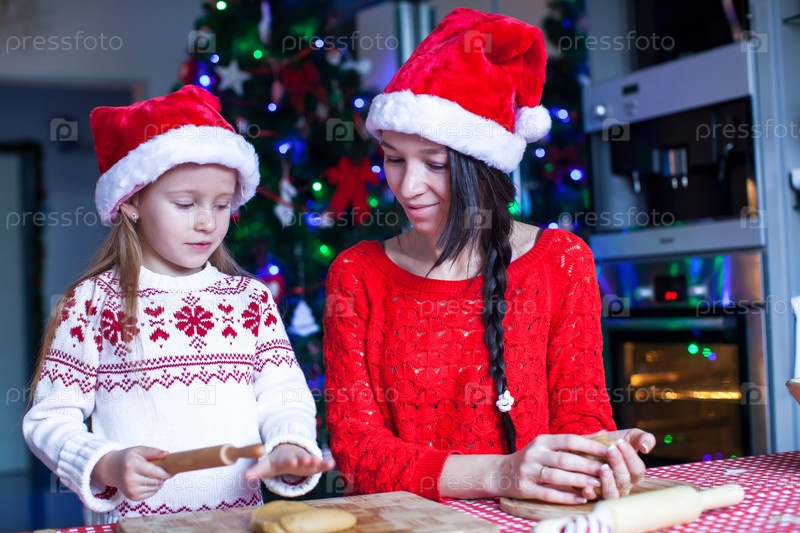 Мать и дочь готовят рождественское печенье