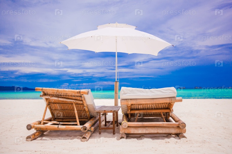 Деревянные шезлонги на пляже