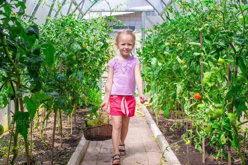 Милая маленькая девочка в теплице