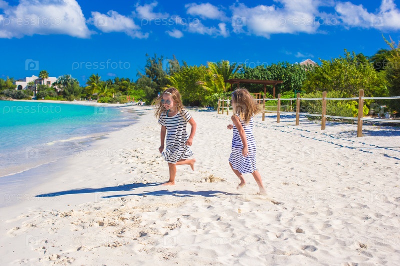 Сестренки играют на пляже