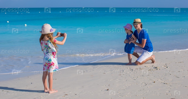 Отец с дочерьми на пляже