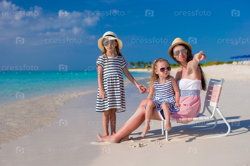 Мать с дочерьми на пляже
