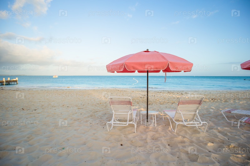 Тропические пустой песчаный пляж с зонтом