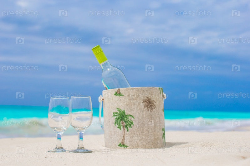 Бутылка белого вина на пляже